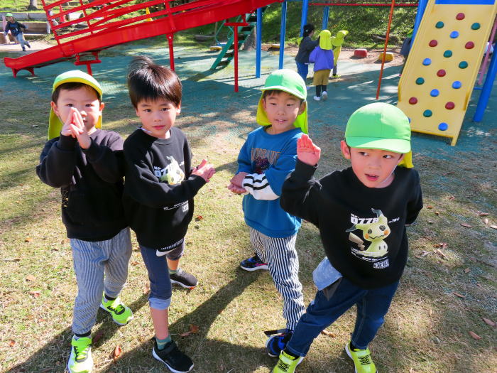 園庭に出ると、「鬼ごっこする人集まってー」と元気いっぱい走る子ども達です。