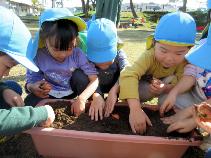 球根が見えなくなるように丁寧に植えました。「はやく大きくな~れ」
