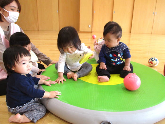 ピョンピョントレーニングで遊びました。「トランポリンみたいで楽しいよ!」