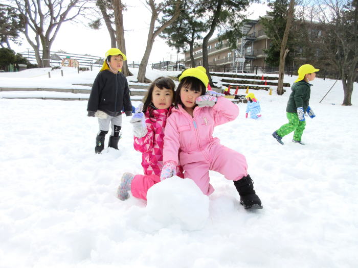 雪をころころ転がして大きな雪玉を作ったよ!